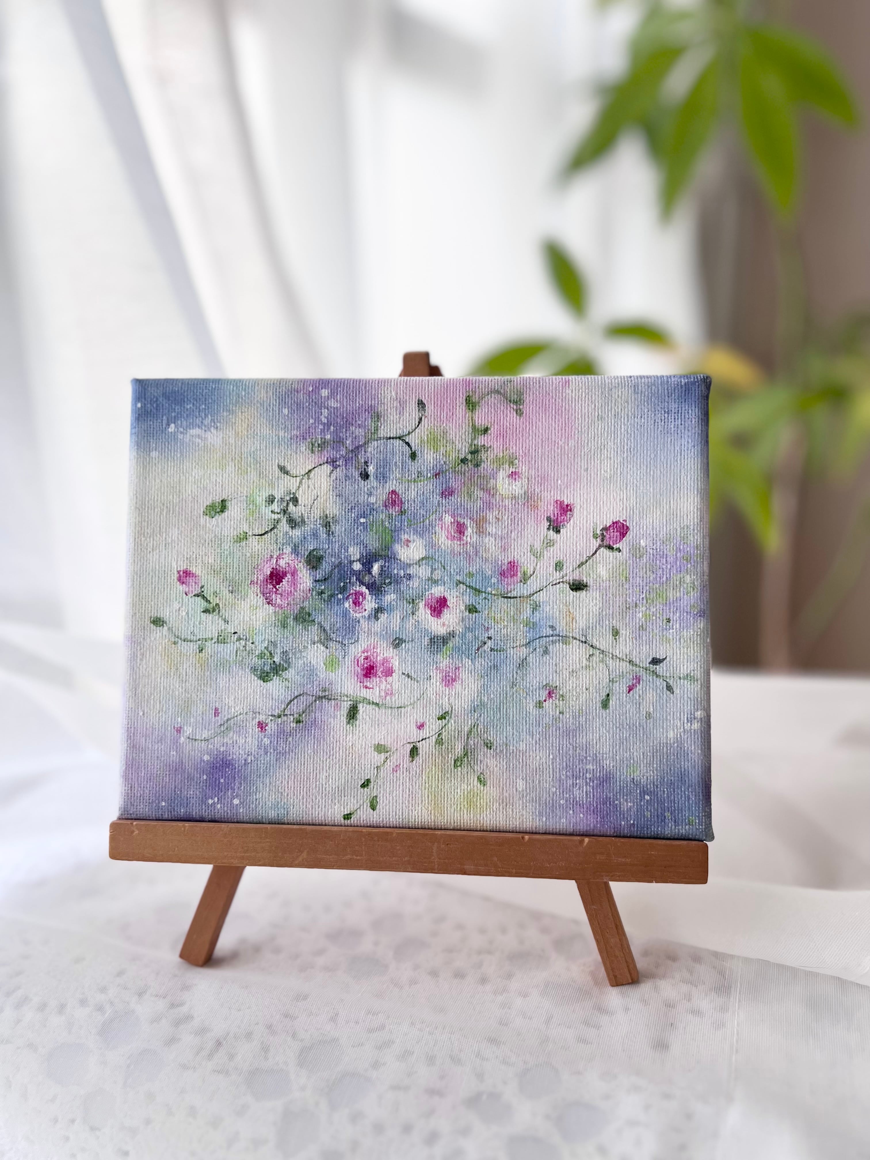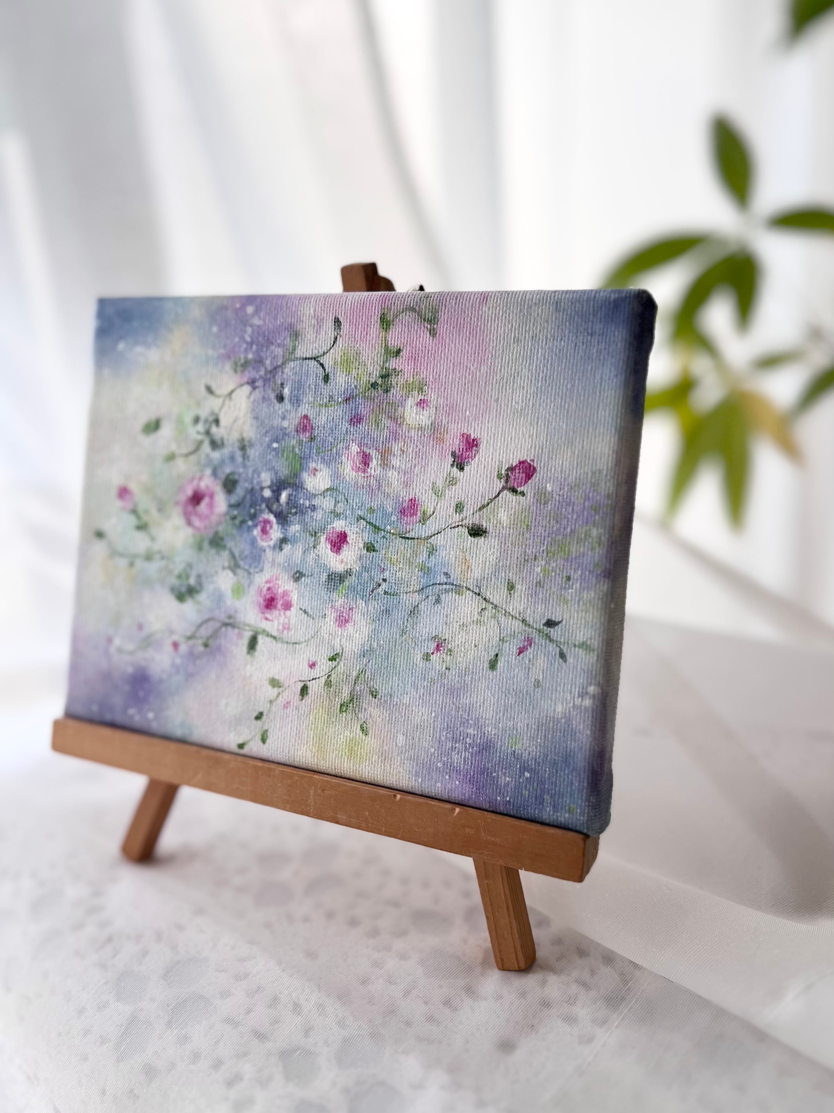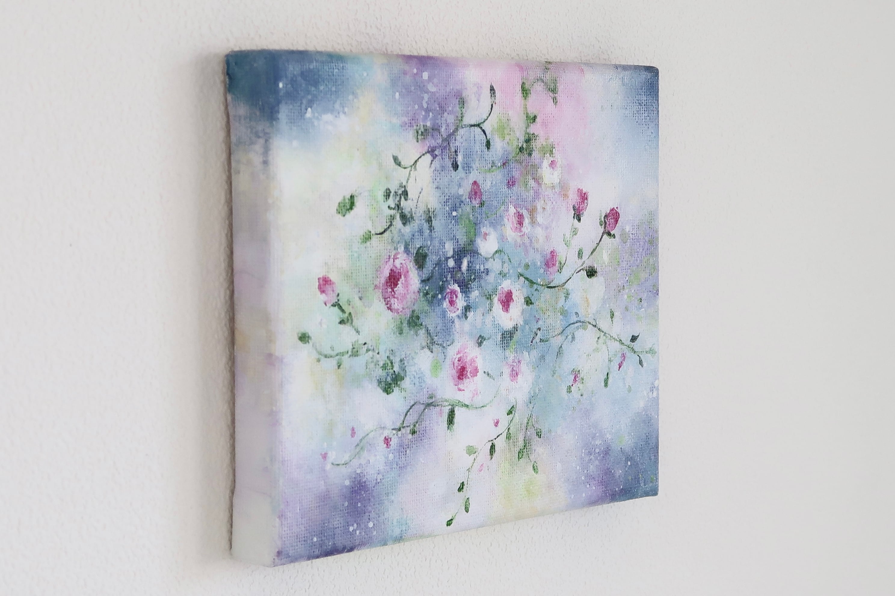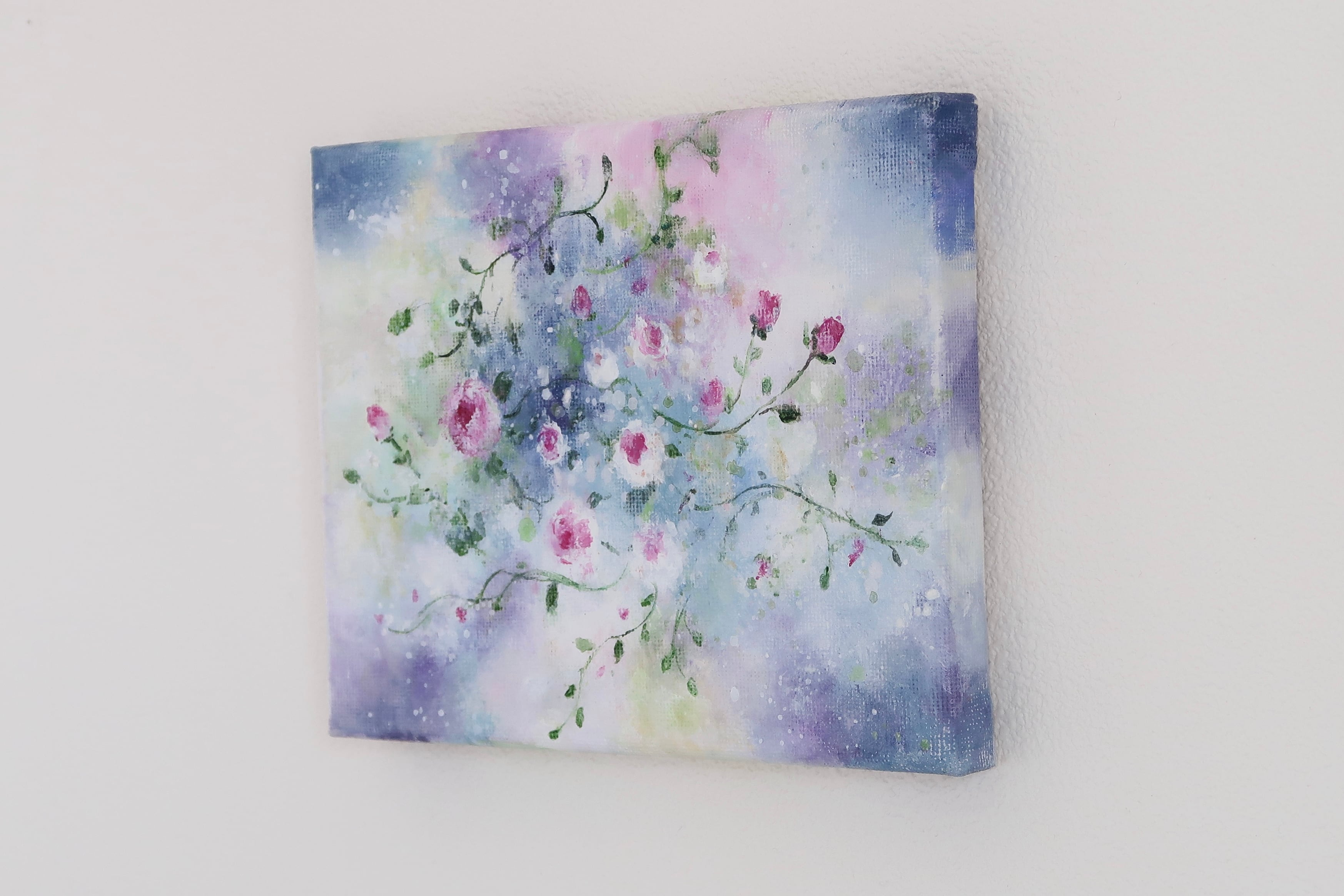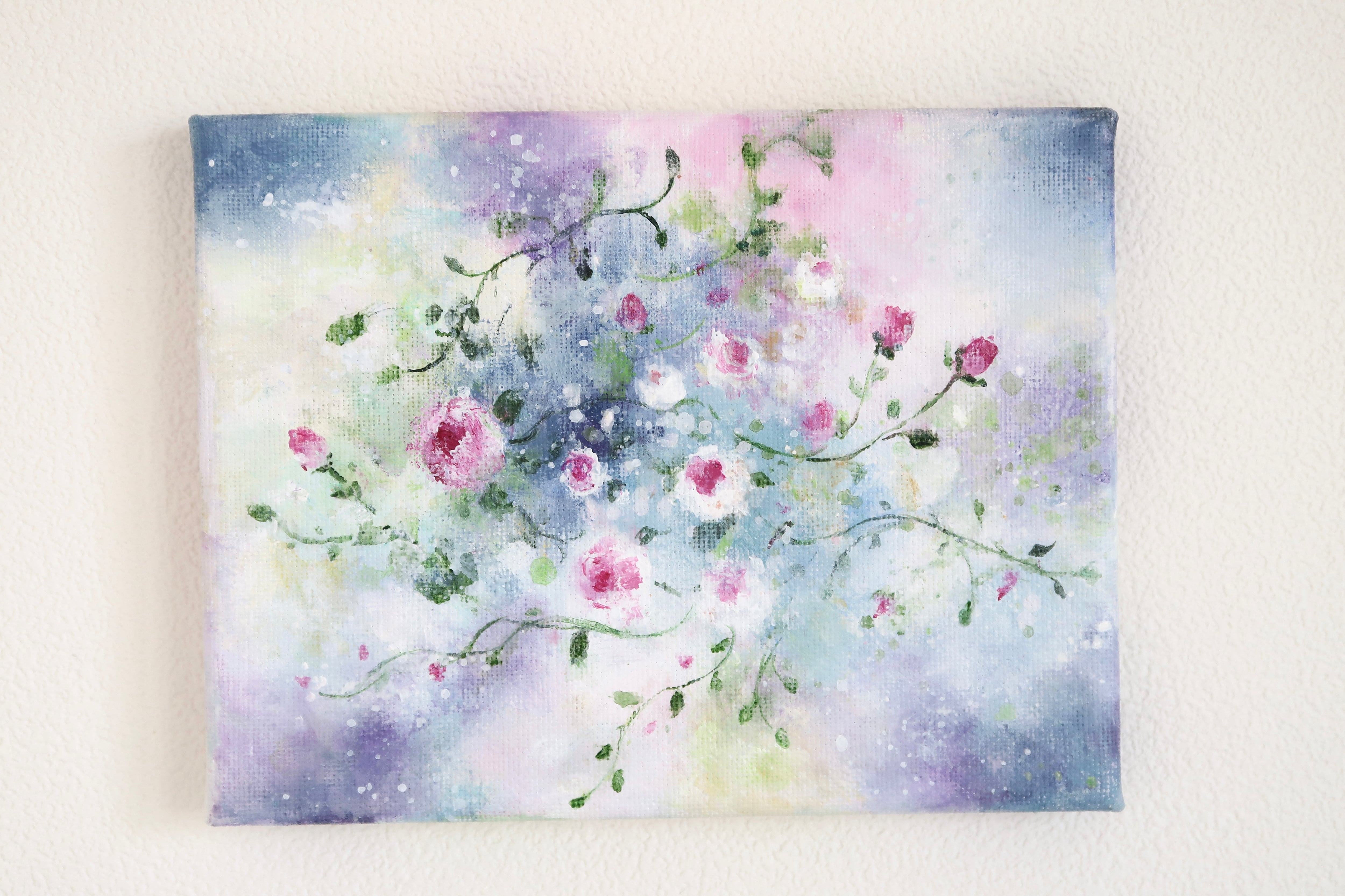 花の記憶がそっと舞い上がるような庭の情景を描きました。